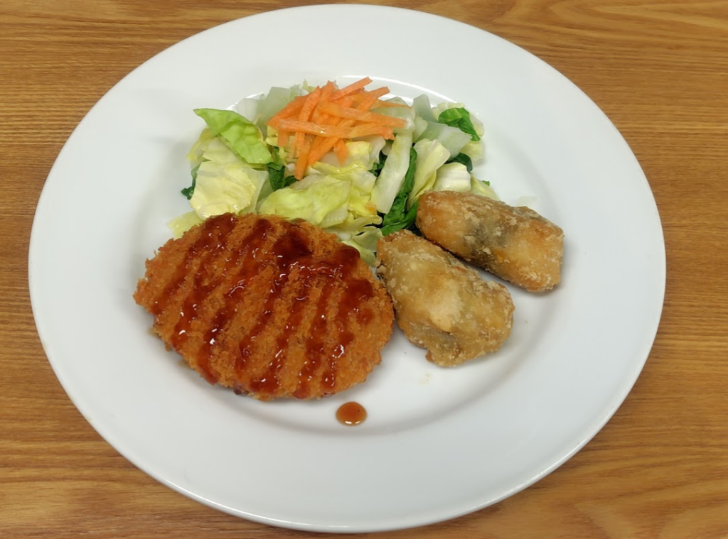 金曜日は、豆腐ハンバーグ&カニクリーミーコロッケです♪