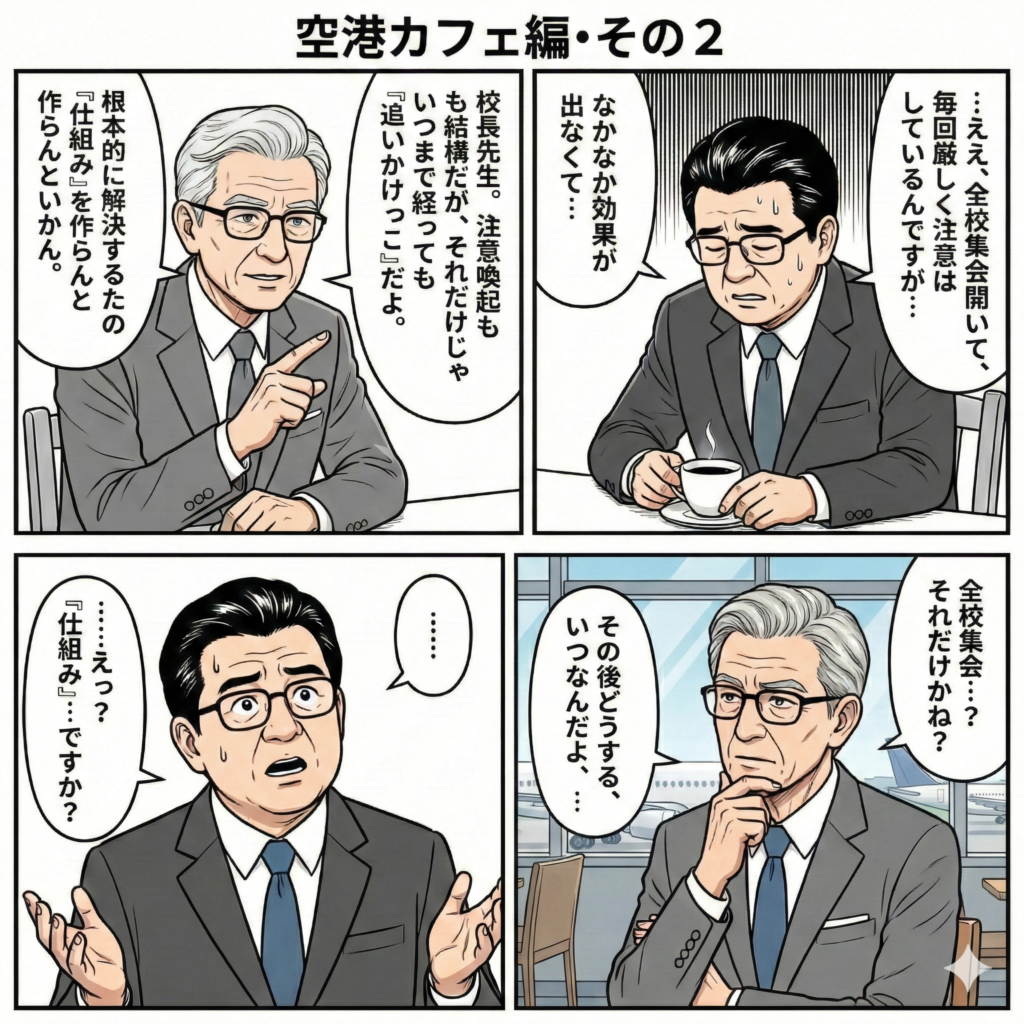生徒が色々な問題を起こす!だから…生徒に対して全校集会で注意喚起!とか