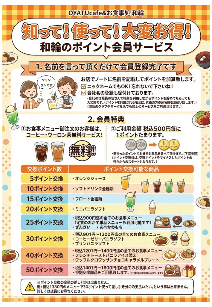 今日は、モバイルオーダーと自動精算機の導入によって、少し変わった(ポイント交換)点を説明致します。(2026年2月7日現在)