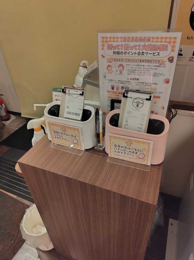 - お食事等々終わられて、お会計も終わられた後に下の写真のところにバインダーごと入れられてください。